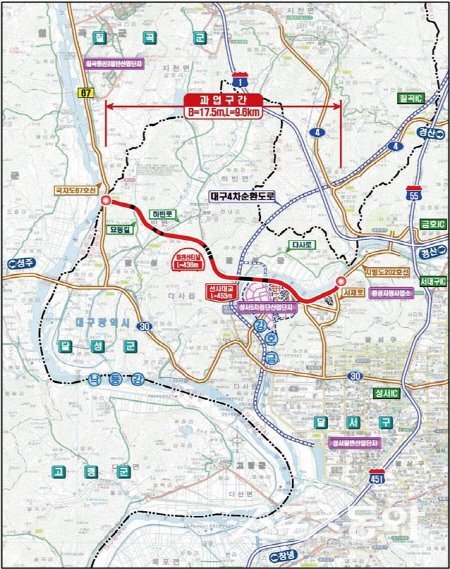 대구광역시 다사~왜관 광역도로 건설사업 위치도. 사진제공 ㅣ 대구시
