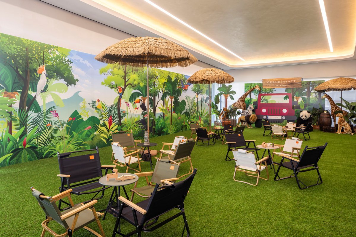 사파리 어드벤처 키즈 라운지는 이번 시즌에 처음 도입됐다. 사파리 콘셉트로 꾸며진 공간 안에는 포토존, 마그네틱월, 장난감 등 아이들이 직접 체험할 수 있는 콘텐츠가 가득하다. 보호자를 위한 야외 테이블과 의자 등 휴식 공간도 마련돼 온 가족이 함께 머무르기 좋다. 투숙객이면 누구나 무료로 이용할 수 있다.