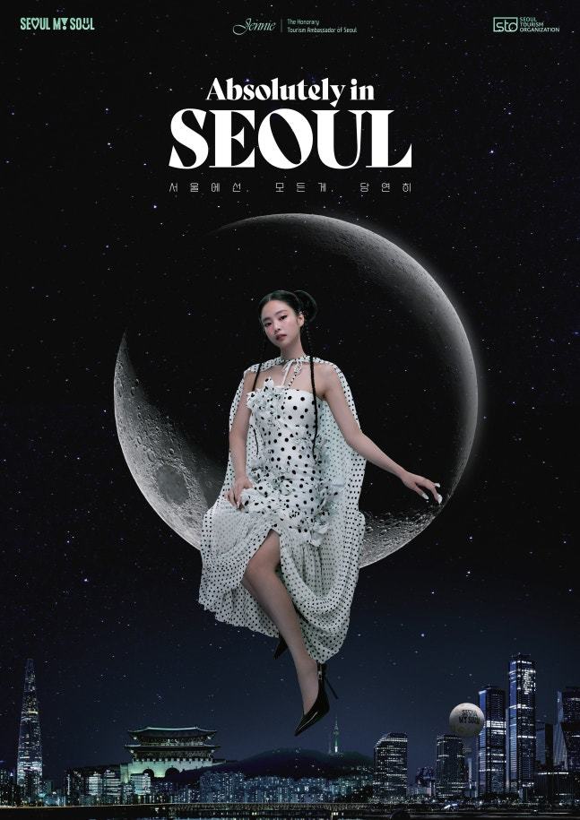 제니는 ‘서울에선. 모든 게. 당연히(Absolutely in Seoul)’라는 메시지로 서울을 직접적으로 알린다.