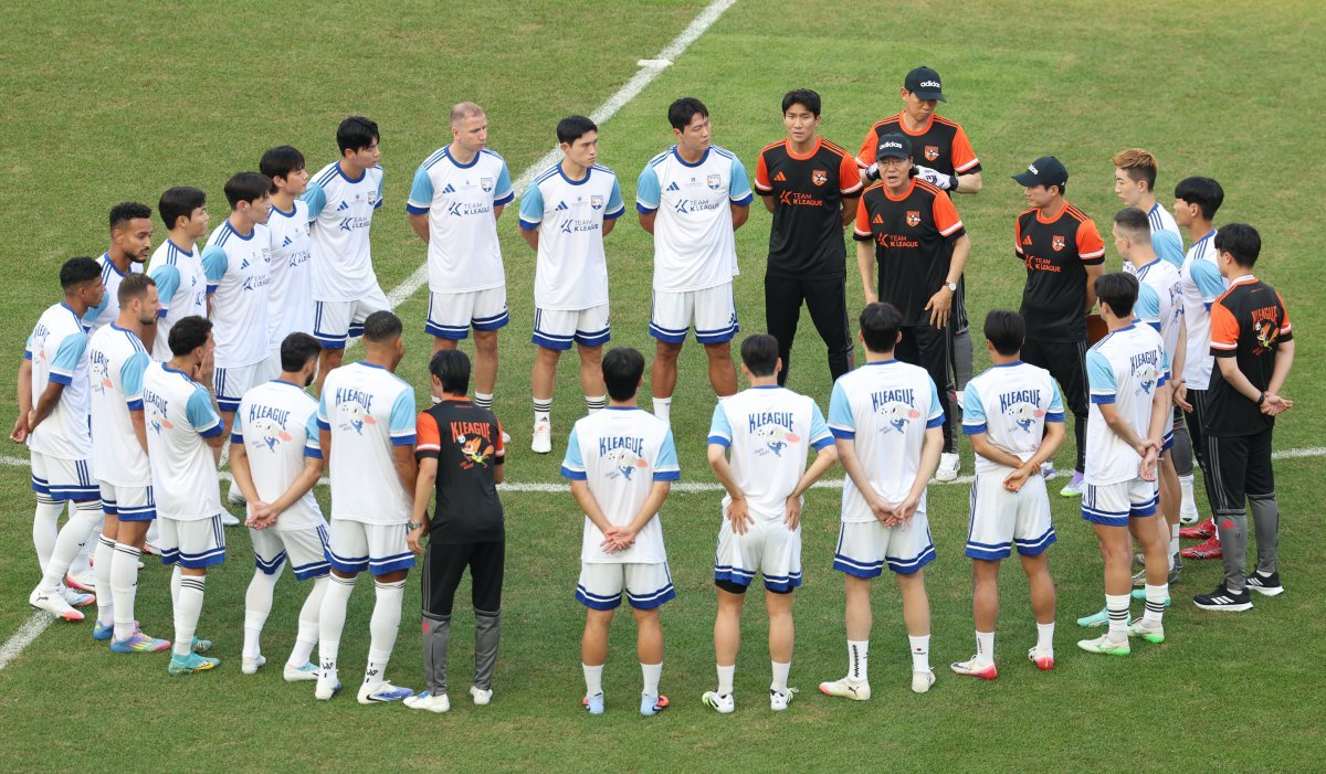 K리그 올스타로 구성된 ‘팀 K리그’가 뉴캐슬(잉글랜드)과 맞대결을 앞두고 첫 담금질에 돌입했다. ‘하나은행 K리그1 2025’가 갓 휴식기에 들어간 까닭에 선수들 간 손발을 맞출 시간이 짧았지만, 짜임새 있는 훈련으로 선전을 기대하게 했다.