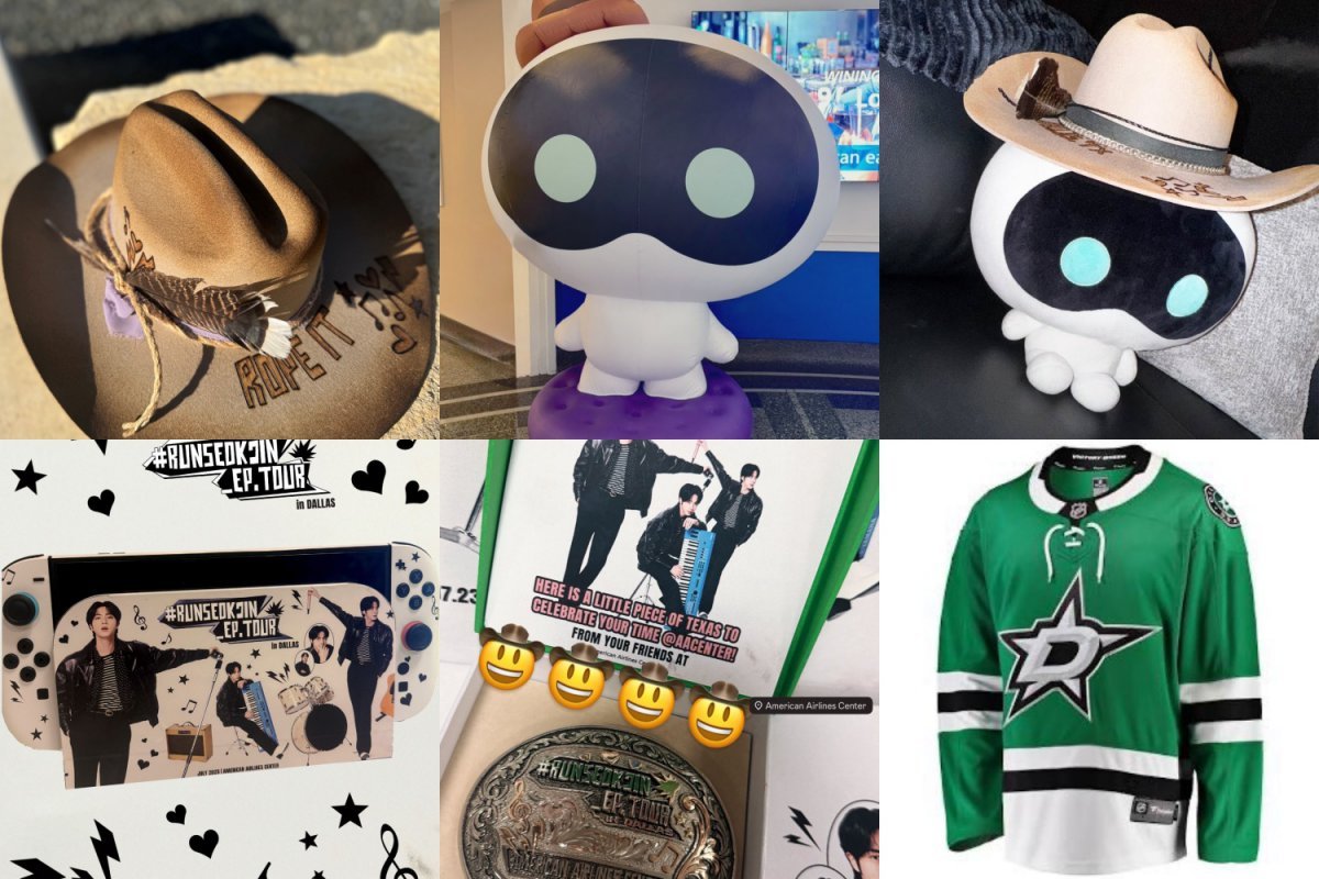 댈러스의 환대는 도시 전체가 참여한 축제에 가까웠다. 공연장 운영진은 지역의 상징인 전통 카우보이 모자를 특별 제작해 진에게 선물했다. 키보다 큰 우떠 인형, 기념패, 커스텀 게임기 등도 함께 전달했다.