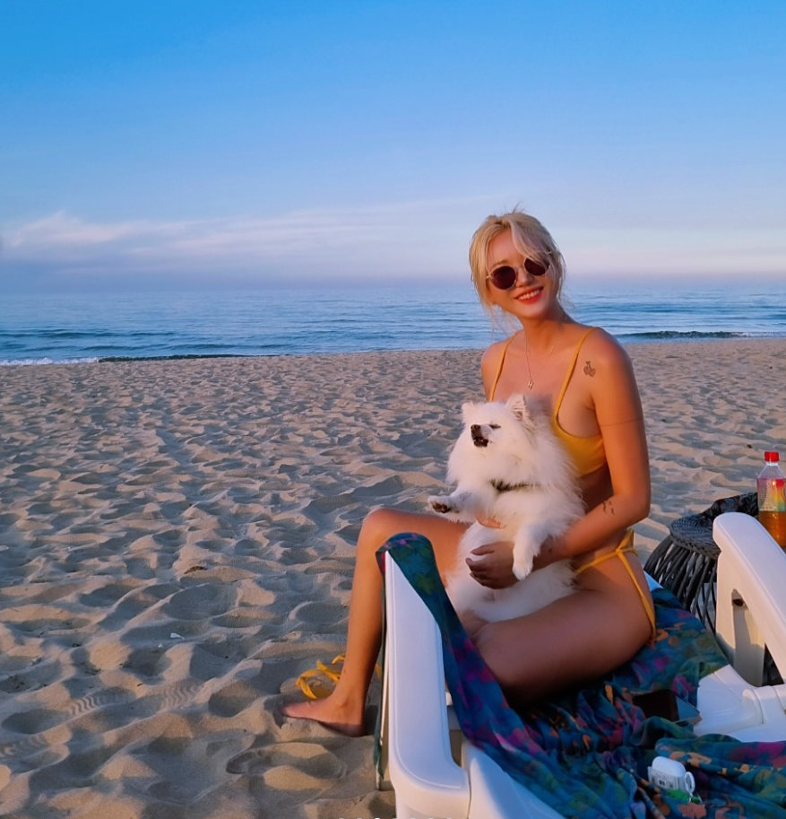 엘리는 29일 자신의 인스타그램을 통해 반려견 우유와 바닷에서 찍은 사진을 공개했다. 사진 속 그는 노란색 비키니를 입은 채 해변의 선베드에서 여유를 즐기는 모습. 반려견과 함께 훈훈한 분위기를 선보인 가운데 건강미 넘치는 바디라인으로 부러움을 자아냈다.