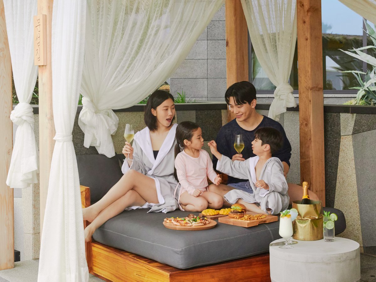 대표 프로그램은 프라이빗 카바나 패키지다. 오전 10시부터 오후 8시까지 운영되는 카바나는 총 3가지 타입으로 구성돼 있다. 2시간 패키지는 음료 3잔과 과일 플래터가 포함되며 20만원, 4시간 패키지는 셰프 초이스 메뉴까지 더해져 30만원, 8시간 패키지에는 뵈브 클리코 샴페인 한 병이 추가돼 60만원에 이용할 수 있다. 모두 투숙객 전용 프로그램으로, 사전 예약은 테이블체크 웹사이트나 전화를 통해 가능하다.