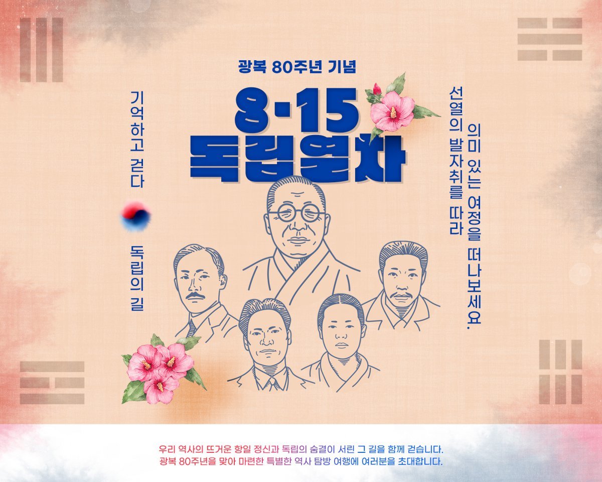 권백신 코레일관광개발 대표이사는 “광복 80주년을 맞아 준비한 이번 ‘독립열차’는 여행을 하면서 역사적 의미를 되새기고, 지역과 함께 호흡하는 기회가 될 것”이라며 “광복절 당일 하루만 출발하는 특별한 상품인 만큼 많은 분들이 참여해 광복절의 의미를 여행으로 아로새겨 오래 간직하시길 바란다”고 전했다.
