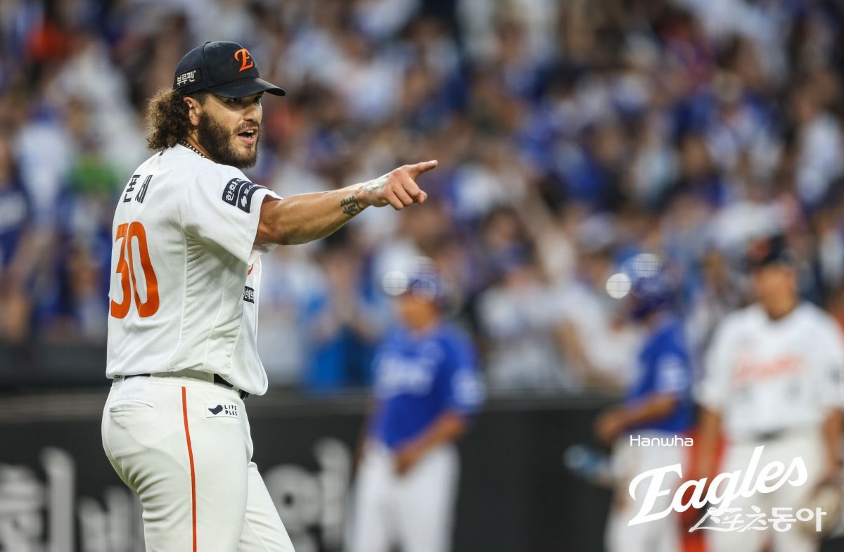 이날 폰세는 최고구속 158㎞의 직구(35개)와 커브(2개), 체인지업(16개), 슬라이더(12개), 투심(8개), 커터(3개)를 골고루 섞어 삼성 타선을 봉쇄했다.