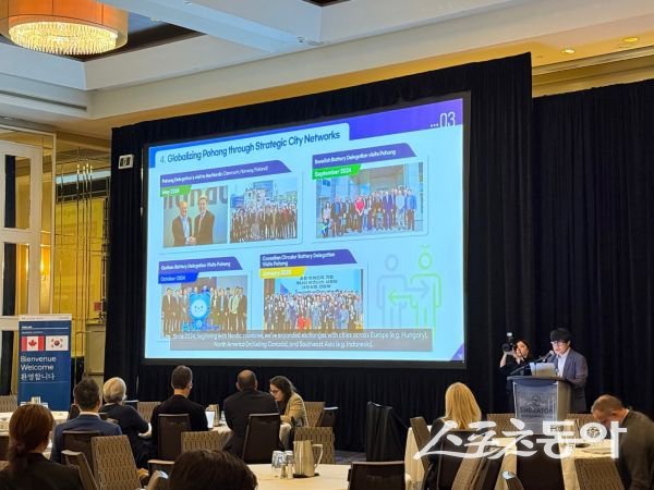 포항시가 ‘2025년 한국-캐나다 과학기술대회’(CKC 2025)에 참석해 배터리세션에서 포항의 이차전지 산업 현황과 역량을 알리는 프레젠테이션에 나섰다. 사진제공ㅣ포항시