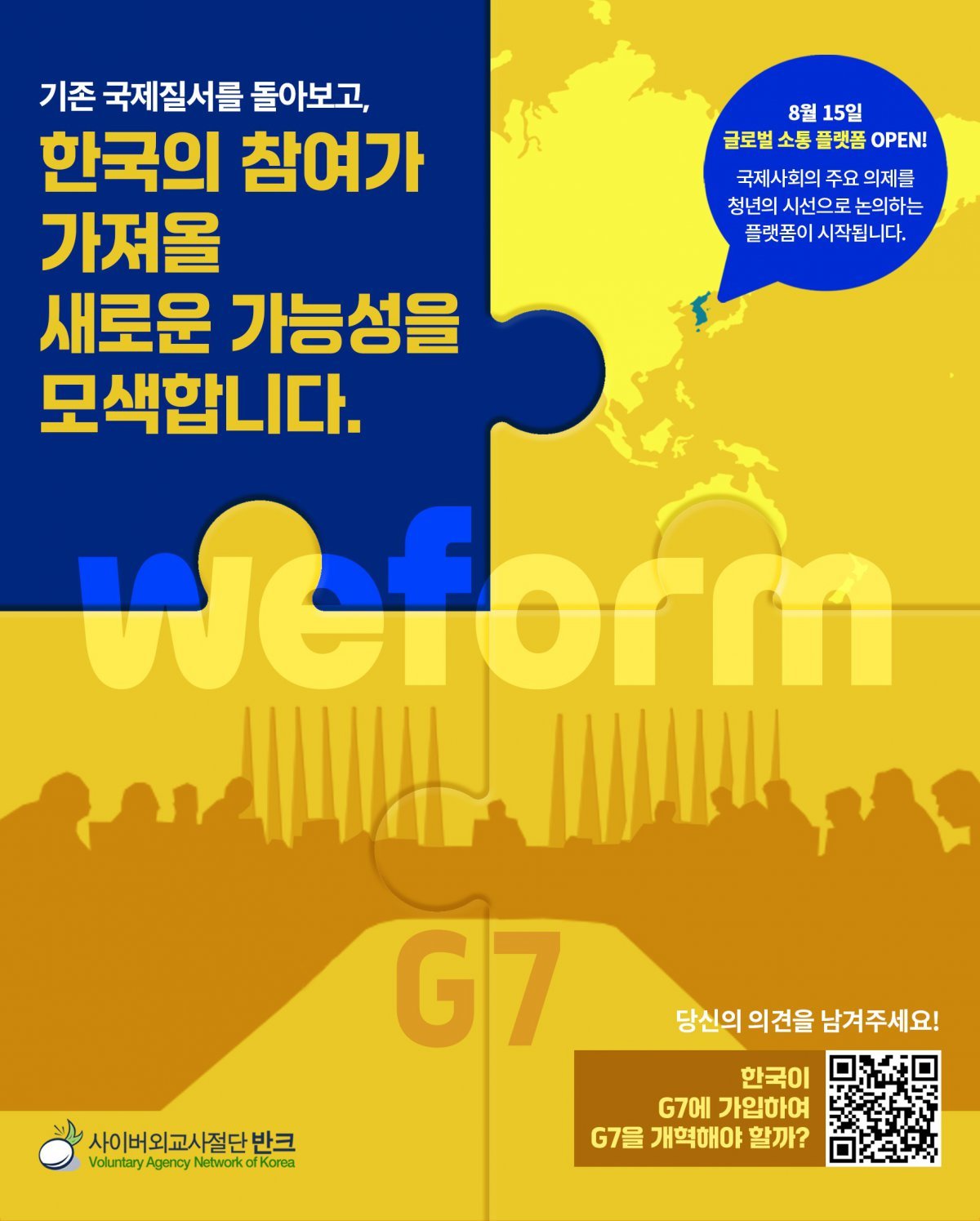 박기태 반크 단장은 “G7은 수십 년간 국제사회의 중요한 논의의 장이 되어왔지만 현재의 복잡한 글로벌 과제를 해결하기 위해서는 구성과 방식에 대한 새로운 접근도 필요하다는 목소리가 나오고 있다”며 “한국은 원조를 받던 나라에서 원조를 제공하는 나라로 전환한 독특한 경험을 가진 국가로서 G7의 논의 구조에 새로운 관점을 제시할 수 있는 잠재력이 있다. 위폼은 이러한 국제적 논의에 시민이 관찰자가 아닌 참여자로 나서서 자신의 의견을 제시하고 다른 사람들과 토론하며 변화의 가능성을 모색할 수 있도록 설계된 플랫폼”이라고 설명했다.