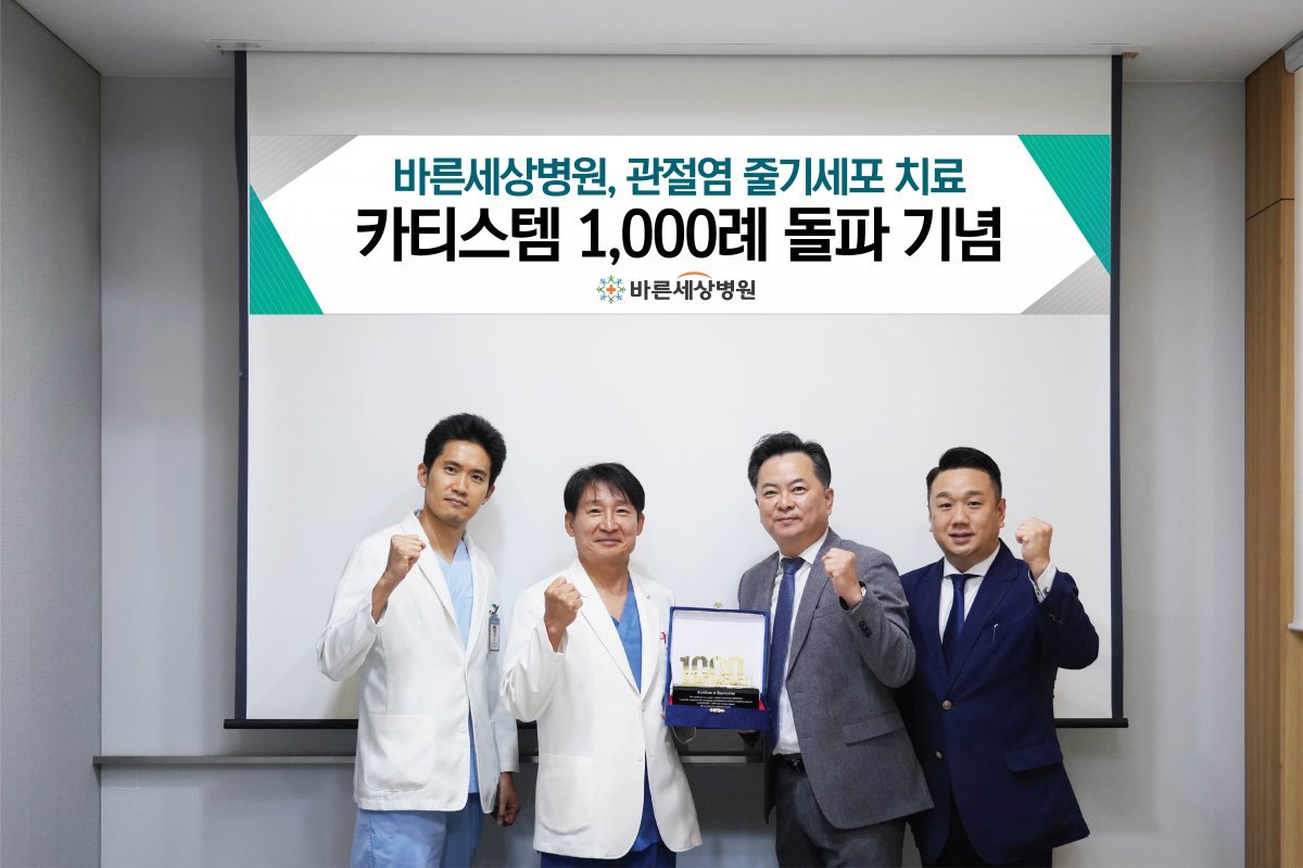 경기 분당 소재 바른세상병원이 최근 제대혈유래 중간엽 줄기세포치료제 ‘카티스템’ 시술 1000례 달성을 기념해 메디포스트로부터 감사패를 받았다.