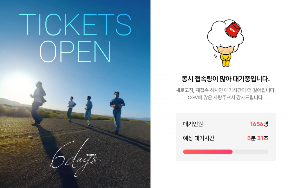 데이식스 영화 티켓팅 오픈→인기 美쳤다…CGV 어플도 깜짝