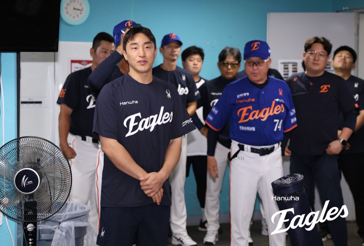 손아섭은 1일 광주 KIA 타이거즈전을 치르는 한화 선수단에 합류해 새로운 동료들과 인사를 나눴다.