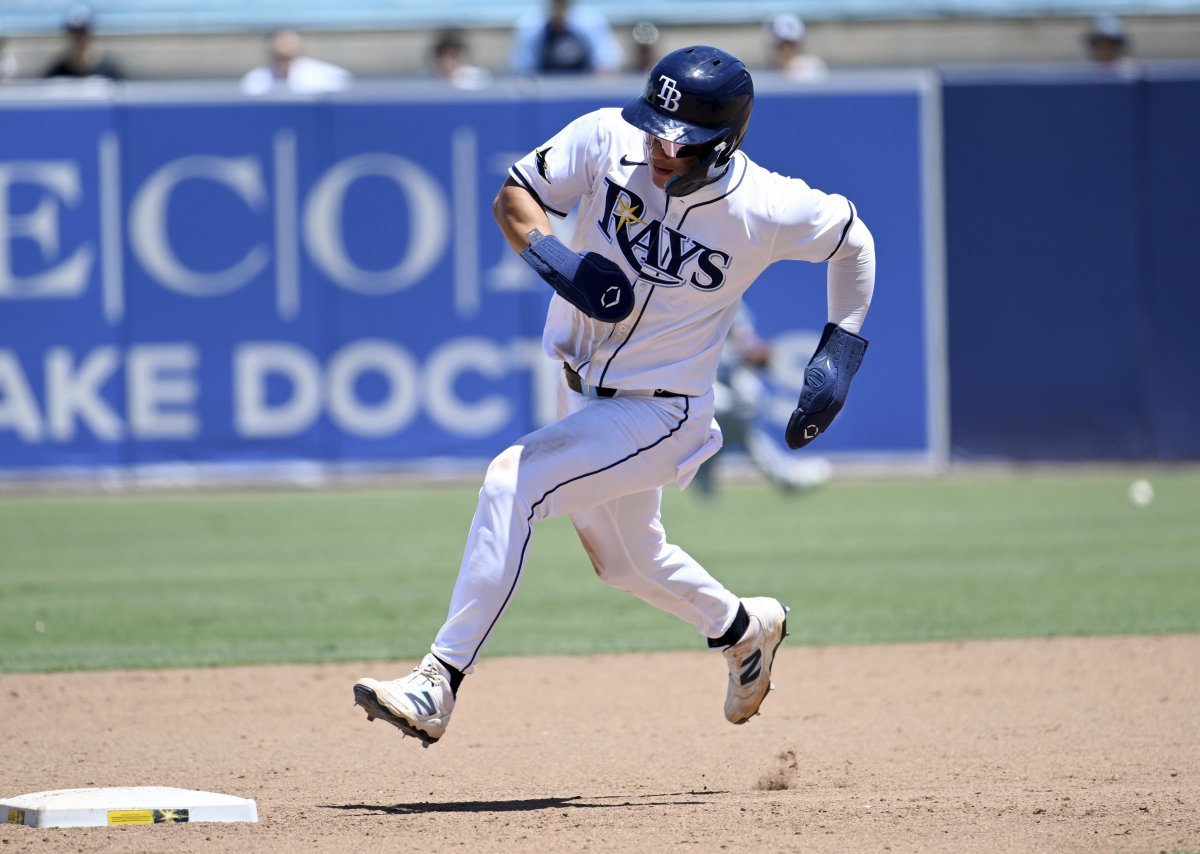 탬파베이 김하성이 4일 탬파 조지 M.스타인브레너 필드에서 열린 ‘2025 메이저리그(MLB)’ LA 다저스와 홈경기에 5번타자 2루수로 선발출전했다. 9회말 볼넷으로 출루한 김하성이 후속타자 제이크 맹엄의 우전 안타 때 2루를 돌고 있는 모습. 탬파(미 플로리다 주)|AP뉴시스
