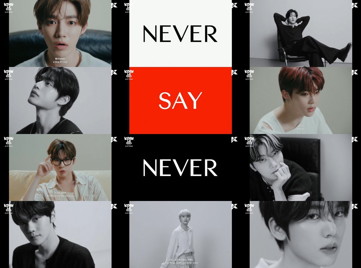 제로베이스원은 분위기를 이어 오는 9월 1일 발매 예정인 정규 1집 ‘네버 세이 네버’의 스포일러 필름을 깜짝 공개했다. 영상에는 마치 화보 촬영 같은 무드 속 제로베이스원이 인터뷰하는 모습이 담겼다. 멤버들은 “진짜 강아지가 운전하는 거 봤다니까요”, “우주의 섭리죠”, “안되는 건 진짜 안되는 거예요” 등 불가능할 것들을 하나씩 이야기하며 컴백 궁금증을 고조시켰다.