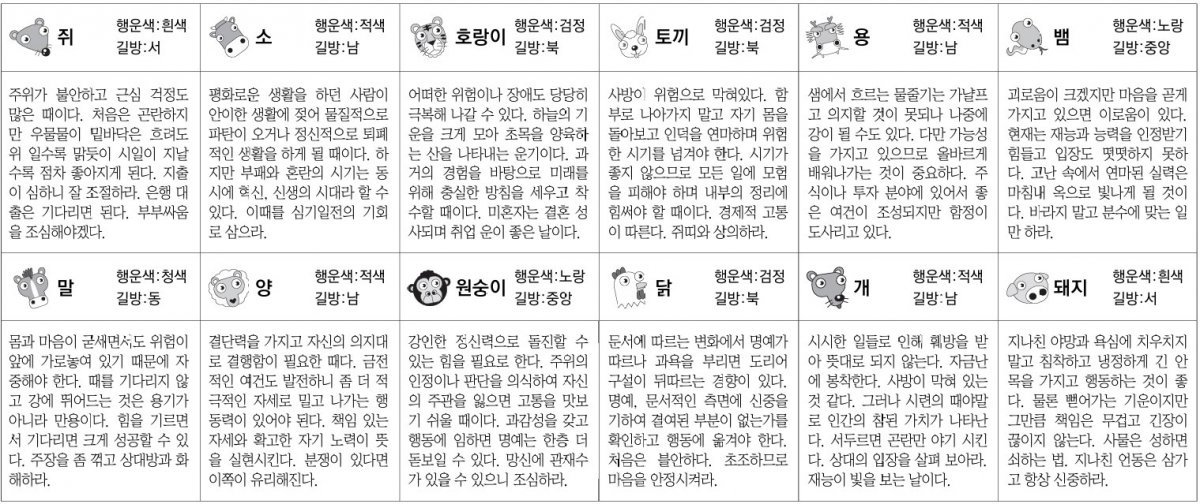 ■ 스포츠동아 오늘의 운세 띠별|운수 좋은 날 (음력: 윤 6월 12일)