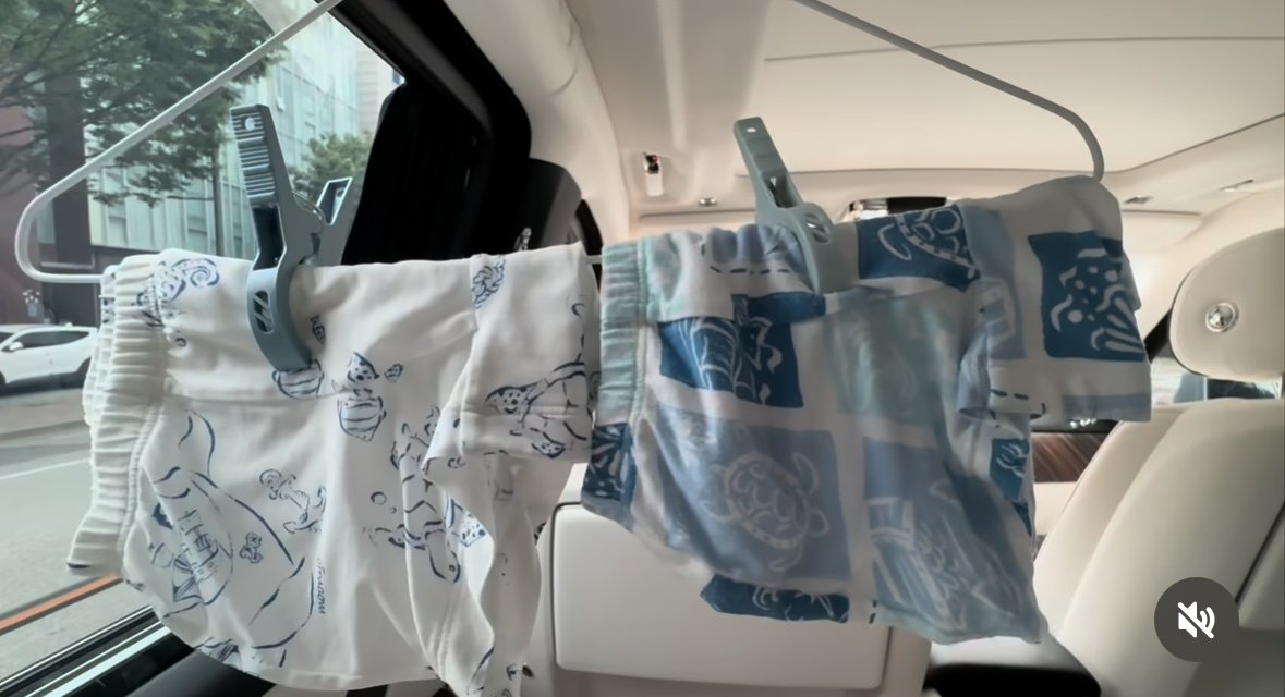 글과 함께 차량 안에 널어놓은 아들의 팬티 사진도 공개해 눈길을 끌고 있다.