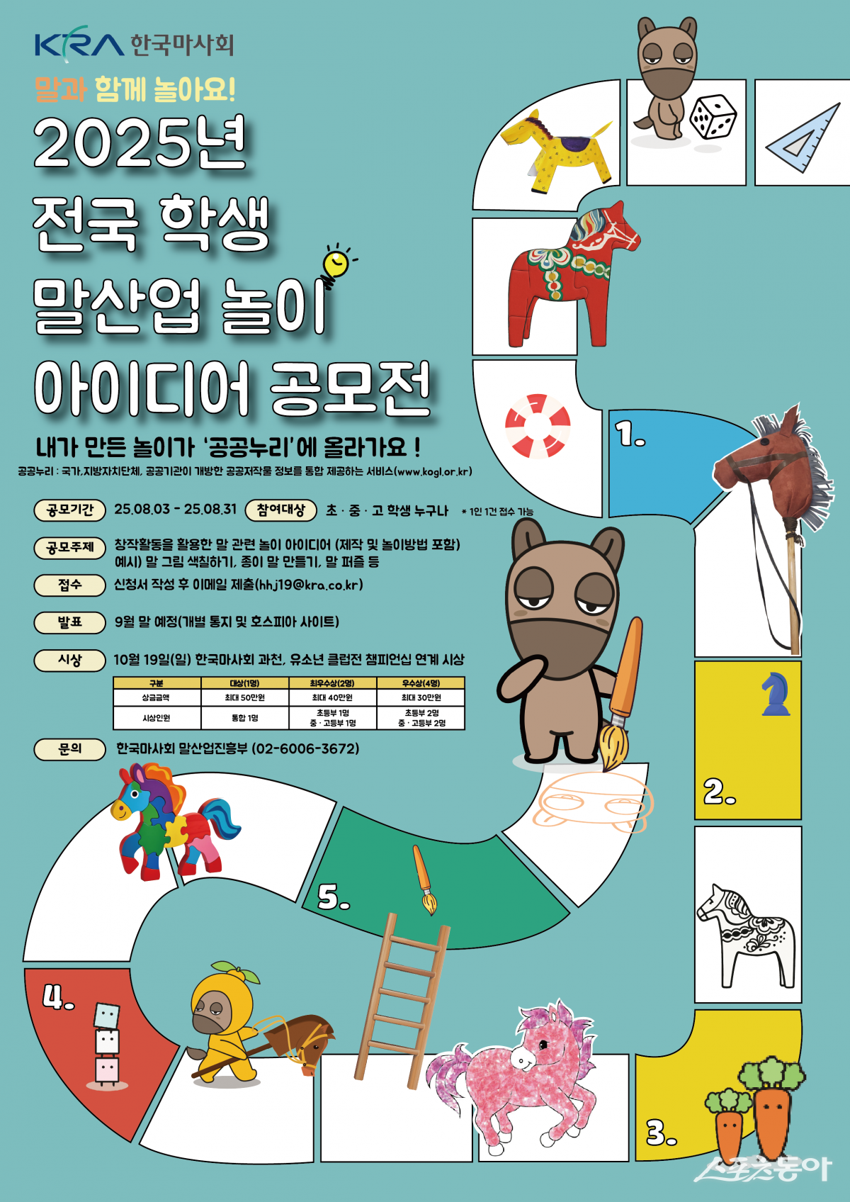 한국마사회(회장 정기환)가 ‘말과 함께 놀아요! 2025년 전국 학생 말산업 놀이 아이디어 공모전’을 개최한다고 7일 밝혔다.