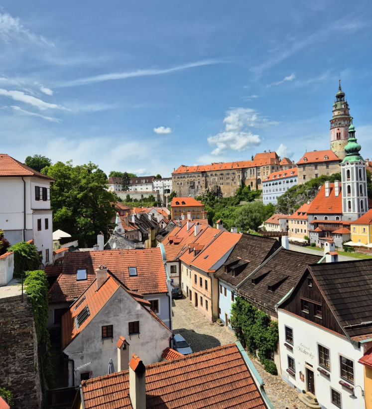체스키 크룸로프는 체코 남부 남보헤미아 지방에 위치한 작은 도시로, 유네스코 세계문화유산으로 지정된 곳이다. 프라하에서 자동차로 약 2~3시간 거리에 있으며, 붉은 지붕과 고풍스러운 건축물, 그리고 블타바 강이 만들어내는 자연스러운 곡선이 인상적이다.이 도시는 13세기에 지어진 체스키 크룸로프 성(Ceský Krumlov Castle)을 중심으로 형성됐다. 성은 체코에서 프라하성 다음으로 큰 규모를 자랑하며, 전망대에 오르면 마을 전체를 한눈에 내려다볼 수 있다. 특히 성탑은 체스키 크룸로프의 상징적인 구조물로, 멀리서도 쉽게 눈에 띈다.
