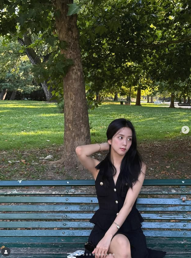 블랙핑크 지수가 이탈리아 밀라노의 한 공원에서 여유로운 오후를 보내는 모습을 인스타그램에 공개했다. 지수는 ‘산책’이라는 짧은 글과 함께 벤치에 앉아 있는 사진, 나무 그늘 아래를 거니는 사진을 올렸다. 검정 민소매 원피스와 블랙 슈즈를 매치한 차림은 도시적이면서도 차분한 분위기를 자아냈다.