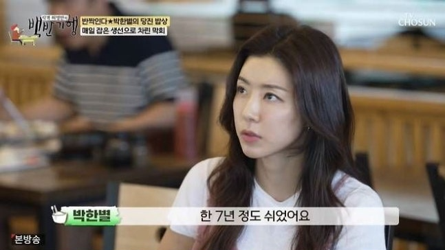10일 방송된 TV조선 ‘식객 허영만의 백반기행’에서 박한별은 제주도에서 두 아들과 지낸 7년간의 근황을 전했다. 그는 “제주도 7년 차다. 여덟 살, 네 살 아들을 키우고 있다”며 “둘째는 누가 나가든 들어오든 상관없다. 사탕 주는 사람이 있으면 다 따라가는 스타일”이라고 웃었다.