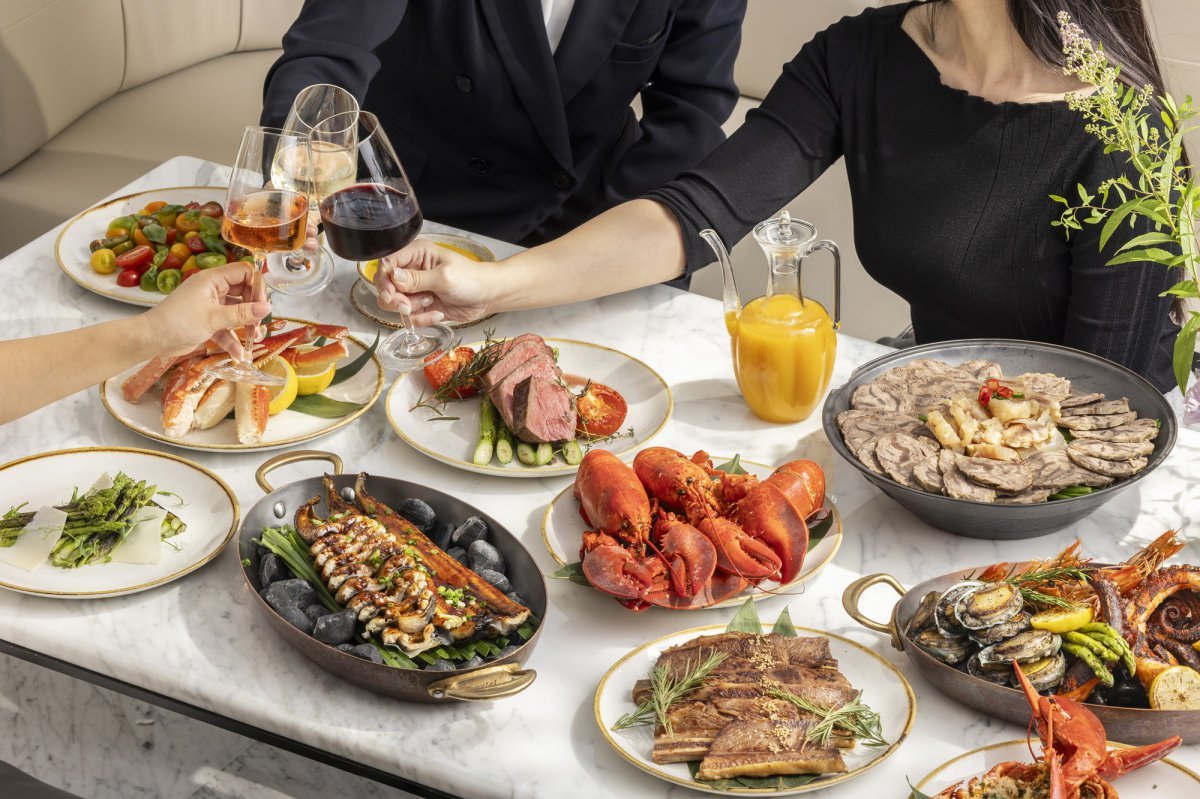 와인과 맥주를 무제한으로 즐길 수 있는 건 주중 디너, 주말·공휴일 런치 또는 디너 한정이지만, 이 조건만 맞춘다면 고기→랍스터→디저트→와인 무한 루프에 빠질 수 있다. 여기에 중식, 한식, 아시안 요리, 르 스쿱 젤라토와 일리 커피까지 더하면 ‘오늘은 칼로리 계산 OFF’를 선언하게 된다.