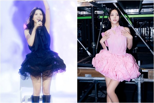 지수는 또 블랙 드레스를 착용하고 무대를 압도했다. 이 특별한 디올 드레스는 블랙컬러의 리본이 섬세하게 스커트를 장식하며 완성도를 높인 스타일로 지수의 아름다운 퍼포먼스에 우아함을 더했다.