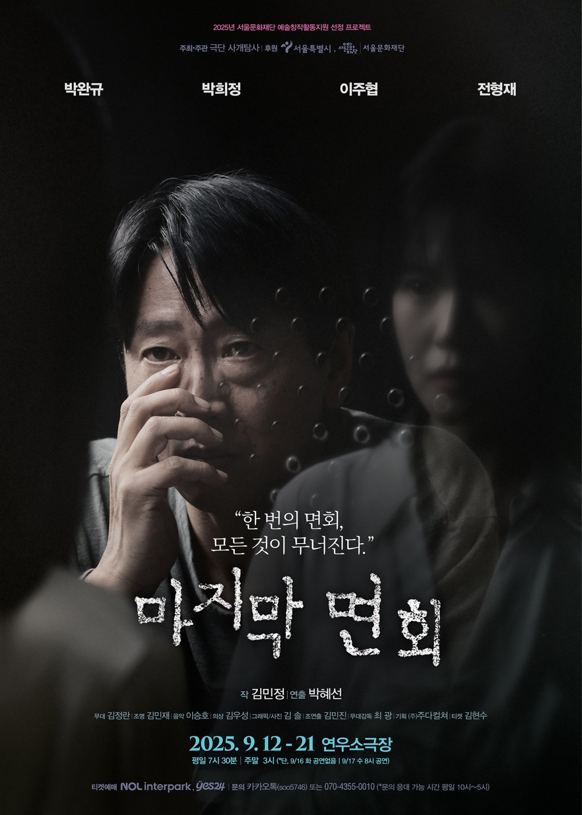 미스터리 심리극 ‘마지막 면회’가 9월 12일부터 21일까지 연우소극장에서 한국 초연된다. 이 작품은 2024년 10월 일본 도쿄 나토리 씨어터에서 세계 초연된 이후, 2025년 서울문화재단 예술창작활동지원 선정작으로 국내 무대에 오른다.