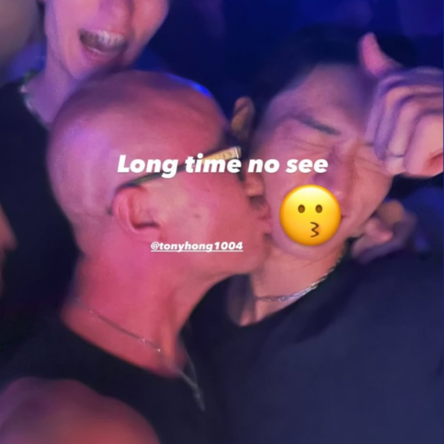 홍석천은 10일 자신의 소셜 계정에 “Long time no see(오랜만이야)”라는 글과 함께 한 장의 사진을 게재했다. 공개된 사진 속 홍석천은 한 클럽에서 유예찬의 뺨에 입을 맞추고 있다. 유예찬은 눈을 질끈 감으며 웃음을 짓고있어 유쾌한 분위기를 자아냈다.
