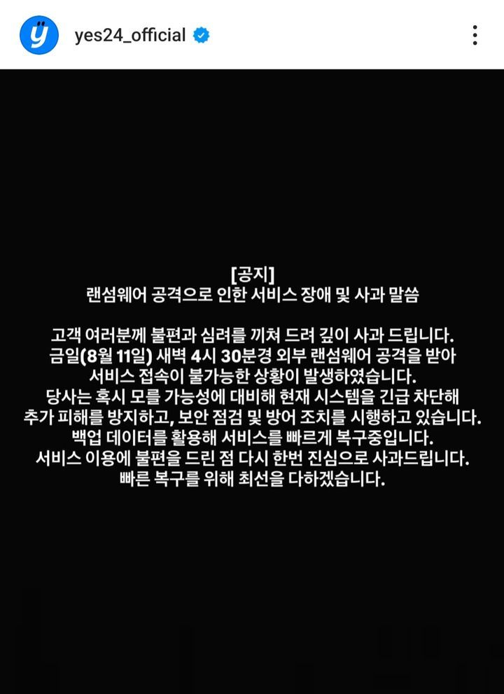 8월 11일 오전, 예스24 홈페이지와 앱은 완전히 멈췄다.