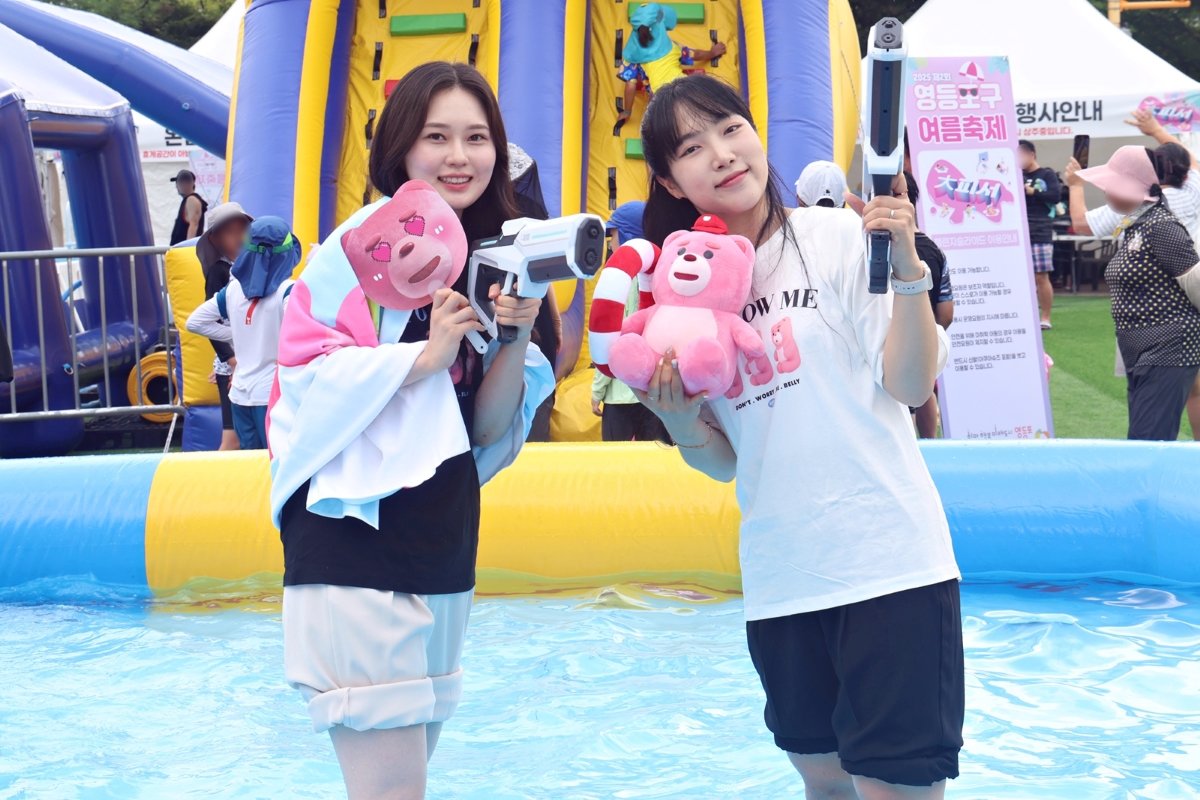 롯데홈쇼핑이 최근 서울 영등포공원에서 열린 여름축제 ‘대(大)피서’에서 자체 캐릭터 ‘벨리곰’을 선보였다. 본사가 위치한 영등포구 지역사회와 상생하고, 지역민을 위한 참여형 콘텐츠를 제공하기 위해 기획했다. 대형 벨리곰 포토존을 비롯해 물놀이존 곳곳에 벨리곰 미니 컵튜브를 장식해 시원한 여름 분위기를 구현했다. 사진제공|롯데홈쇼핑