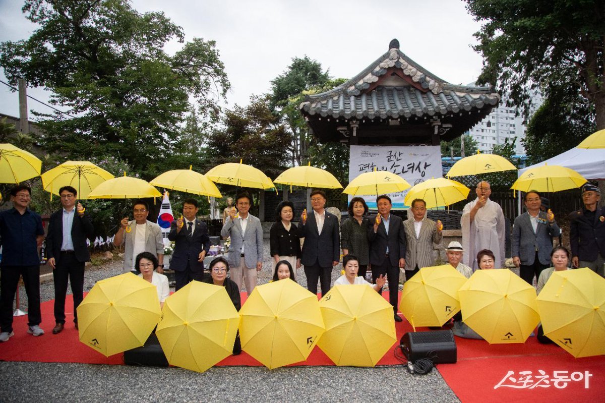 전북 군산시가 지난 12일 동국사 경내 소녀상 앞에서 ‘제10회 군산평화의소녀상 문화제’를 개최했다.