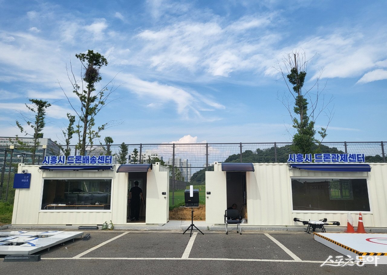 시흥시(시장 임병택)가 국토교통부 ‘2025 드론 실증도시 구축사업’ 공모에 선정돼 8월부터 10월 말까지 배곧한울공원 일대에서 드론 배송 실증사업을 본격 추진한다(드론배송센터 전경). 사진제공|시흥시