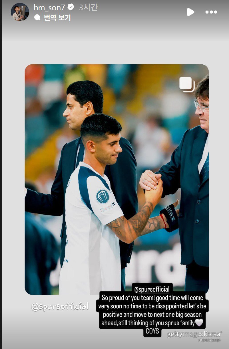 이어 “긍정적으로 생각하고 다음 시즌을 향해 나아가자“라며 ”항상 스퍼스(토트넘) 가족들을 생각하고 있다”라고 덧붙였다.
