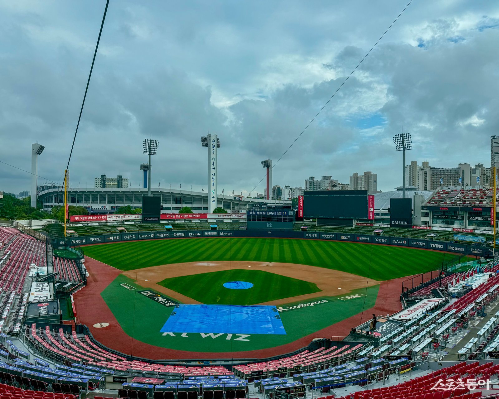 전날 폭우로 경기 진행이 어려웠던 수원KT위즈파크에는 이날 오전까지 많은 비가 내려 그라운드 상태가 악화됐다.