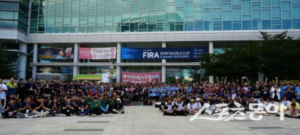 대구광역시 ‘FIRA 로보월드컵 앤 써밋 2025’ 참가자들이 기념 촬영하고 있다. 사진제공 ㅣ 대구시