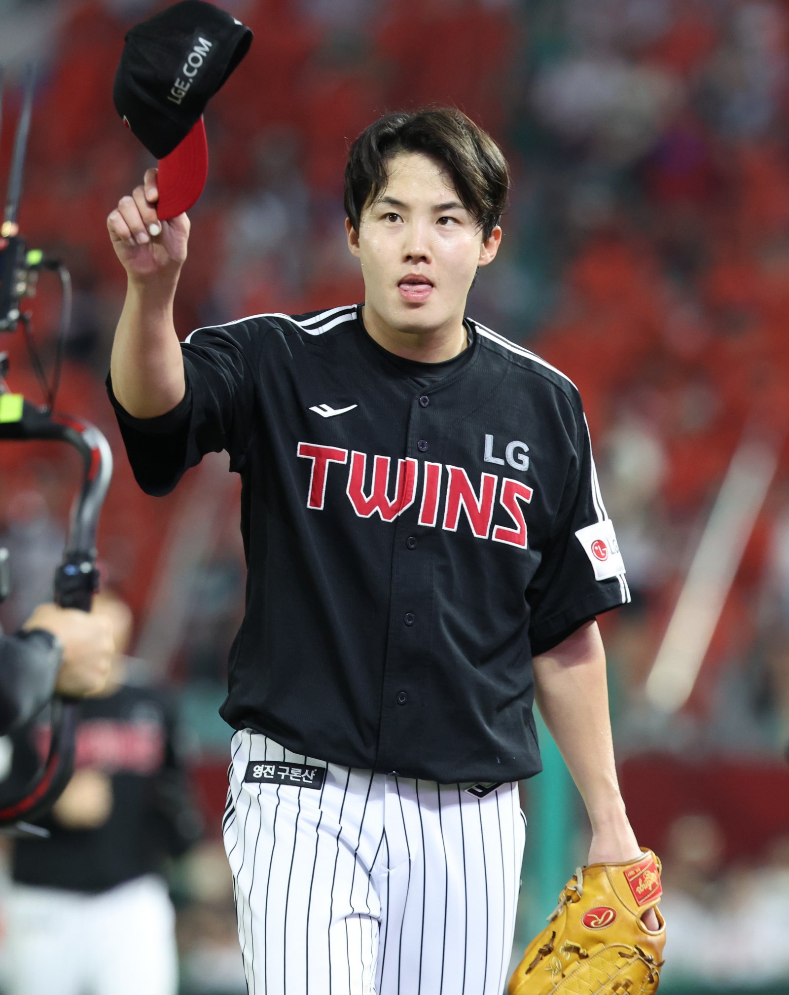 6회말에도 마운드에 오른 임찬규는 무사 1루에서 최정을 유격수 병살타로 처리하며 단숨에 2아웃을 잡았다. 이후 에레디아를 1루수 파울 플라이로 처리해 퀄리티스타트(QS·선발 6이닝 이상 3자책점 이하 투구)를 완성했다.