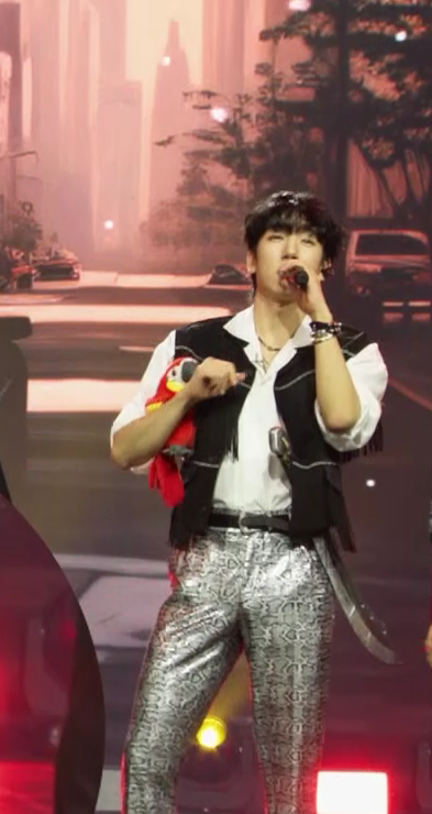 ‘느와르’ 팀의 손태진과 최수호는 각각 ‘영웅본색’의 주윤발과 ‘캐리비안 해적’의 잭 스패로우의 모습을 뽐낸다. 특히 손태진은 검은색 선글라스에 긴 트렌치코트, 입에 성냥개비를 문 채 안개 자욱한 어둑한 거리를 걸어 나오는 영화 속 한 장면을 고스란히 재현해 입틀막을 이끈다. 최수호는 잭 스패로우답게 애착 앵무새를 어깨에 달고 거대한 칼로 싸움을 벌이는 퍼포먼스까지 선보여 박수를 이끈다.