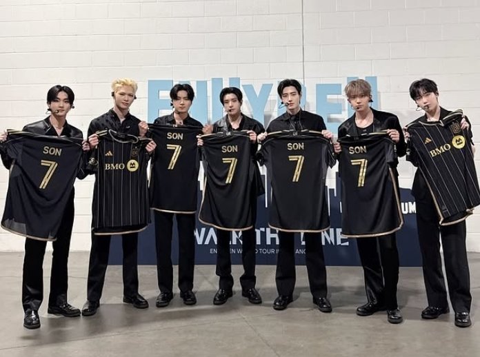 최정상과 최정상의 만남. 그룹 엔하이픈이 손흥민의 ‘새 안방’ LA BMO 스타디움에서 공연을 펼쳐 글로벌 팬덤을 이목을 집중시켰다. 사진|LA FC SNS 캡처