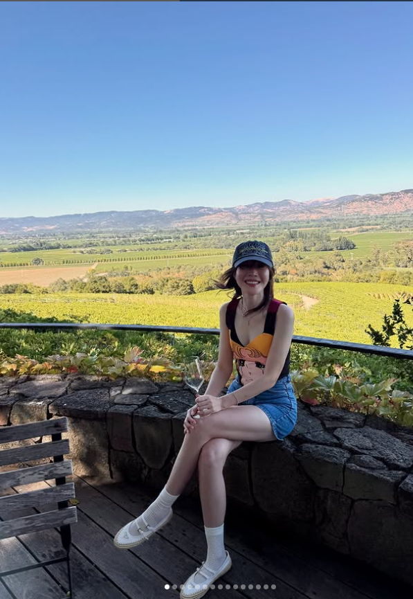 공개된 사진 속 엄지원은 나파밸리의 포도밭과 와이너리를 배경으로 미소를 지으며 여유로운 오후를 만끽하는 모습이다. 테이스팅룸에서는 와인잔을 손에 들고 와이너리 투어를 즐기는 모습이 담겼다.