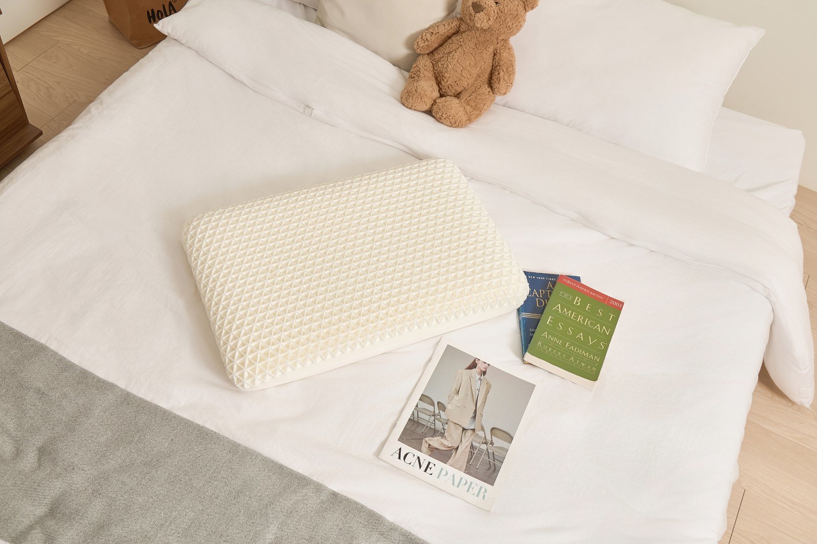 베개 상단 소재는 피부 자극이 적고 통기성이 뛰어난 TPE(열가소성 탄성중합체)를 적용했다. 단일 재질로 제작해 먼지 발생이 적고, 하단부와 분리해 따로 물세척을 할 수 있어 위생 관리도 간편하다.