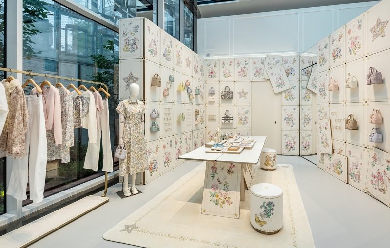 새로워진 디올 성수에서는 Dior Lucky 컬렉션의 다양한 백, 스카프, 액세서리를 선보인다. 이번 제품군은 별, 벌, 네잎클로버, 무슈 디올이 사랑했던 꽃 등 행운을 상징하는 모티브로 장식되어 있으며, 믹스매치가 가능한 디자인으로 다채로운 스타일링을 제안한다.