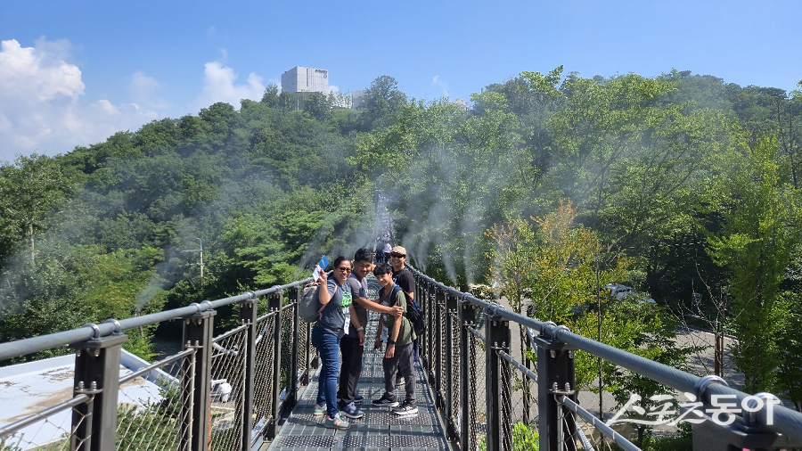 김포시, 환승투어에 참여중인 외국인이 애기봉 평화생태공원에서 기념사진을 찍고 있다. 사진제공|김포시청