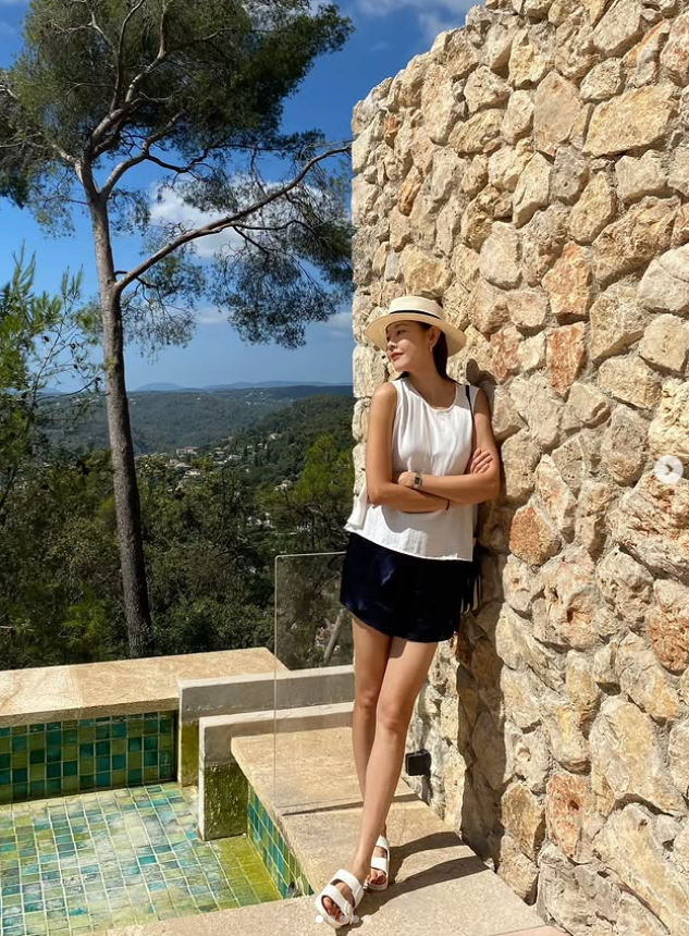 한혜진은 인스타그램에 해바라기 밭을 배경으로 찍은 사진을 올렸다. 새하얀 민소매와 하늘빛 팬츠를 입고, 끝없이 이어진 노란 해바라기 사이에 선 모습은 그 자체로 화보 같다. 또 다른 사진에서는 돌담에 기대어 모자를 눌러쓴 채 여유로운 시간을 즐기고 있다. 뜨거운 햇살과 청량한 바람, 그리고 석조 건물과 언덕 풍경까지 더해져 남프랑스의 여름을 자연스럽게 드러낸다.