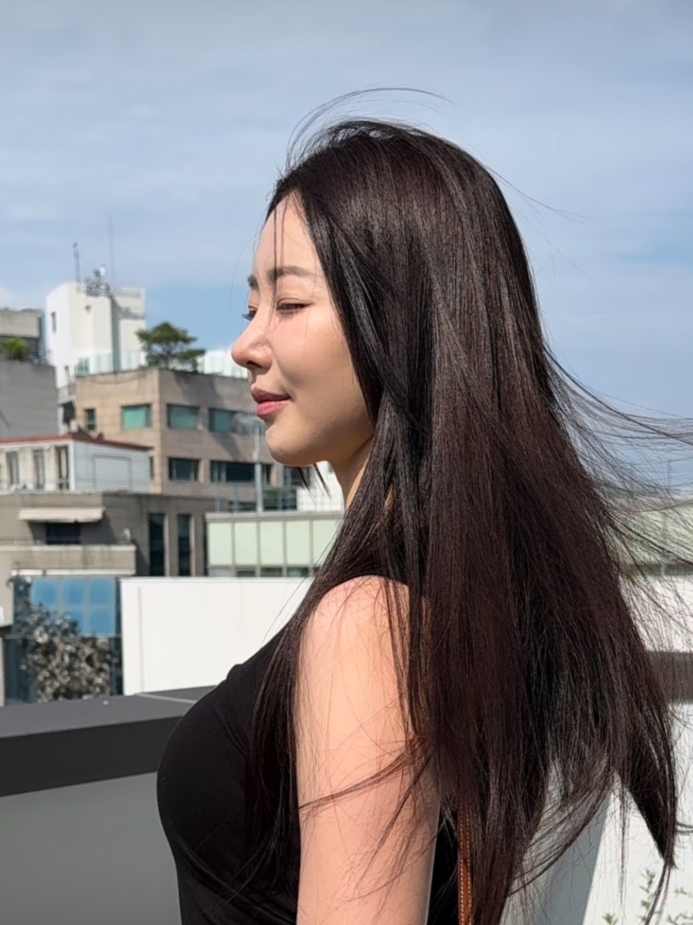 김사랑은 19일 자신의 소셜 계정에 근황 사진을 공개했다. 사진 속 그는 서울 도심의 옥상에서 블랙 민소매 티셔츠와 청바지를 매치해 내추럴하면서도 세련된 분위기를 드러냈다. 긴 생머리가 바람에 흩날리는 모습과 투명한 피부는 나이가 무색한 여신 비주얼을 뽐냈다.