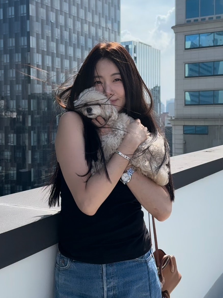 또 다른 컷에서는 반려견을 품에 안고 환하게 미소 짓는 모습으로 따뜻한 분위기를 자아냈다. 특히 김사랑 특유의 청순한 이미지와 사랑스러운 반려견의 조합이 팬들의 시선을 사로잡았다.