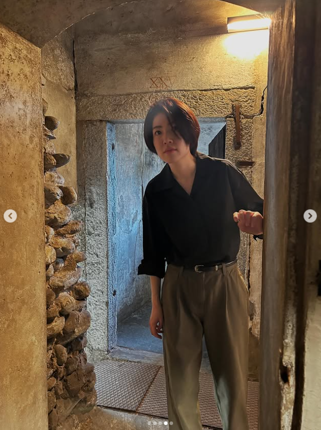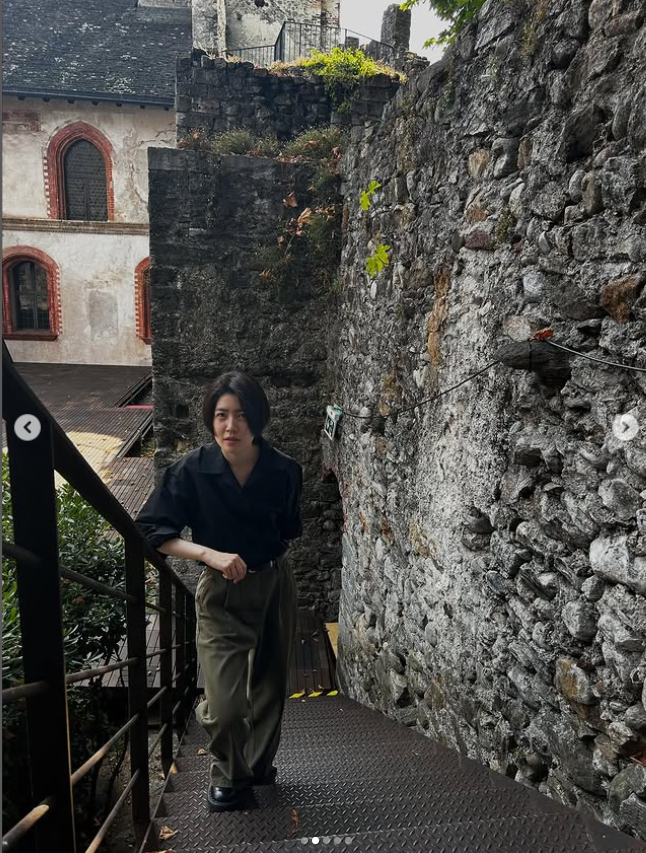 검은 셔츠와 카키 톤 팬츠로 단정하면서도 여유로운 분위기를 연출한 심은경은 성곽의 회랑과 석조 계단, 탑이 있는 풍경 속에서 고즈넉한 순간을 기록했다. 소박한 흑색 셔츠 차림이 오히려 중세 성과 어울리며 묘한 조화를 만들어냈다.