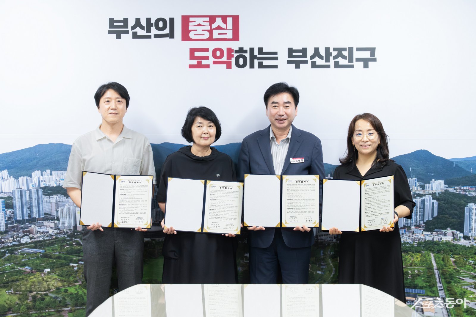 협약식에는 구청장을 비롯해 뽀로로어린이집 안영제 원장, 전포다함께돌봄센터 송은아 센터장, 꿈꾸는지역아동센터 허세훈 센터장이 참석했다. 이번 협약으로 부산진구 내 어린이집·다함께돌봄센터·지역아동센터 등 29개 거점시설이 돌봄 체계에 참여한다.