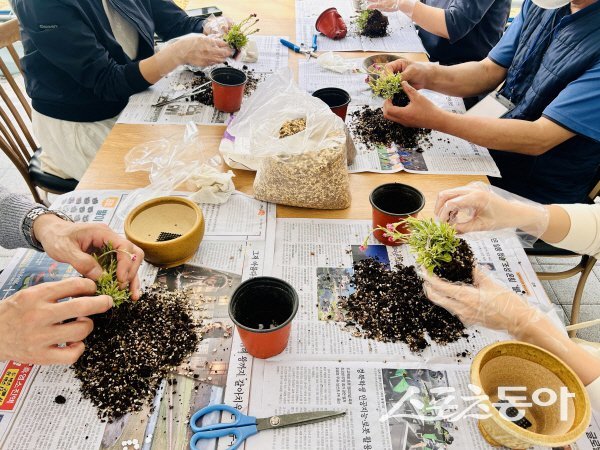 경주동궁원 식물아카데미 수강생들이 이론 강의와 실습을 하고 있다. 사진제공 ㅣ 경주시