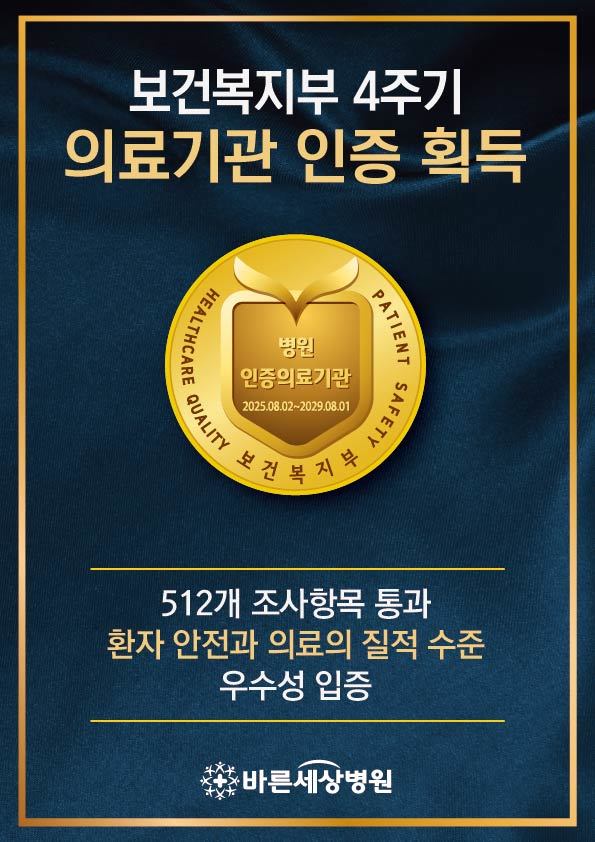 바른세상병원이 최근 보건복지부로부터 4주기 의료기관 인증을 획득했다.