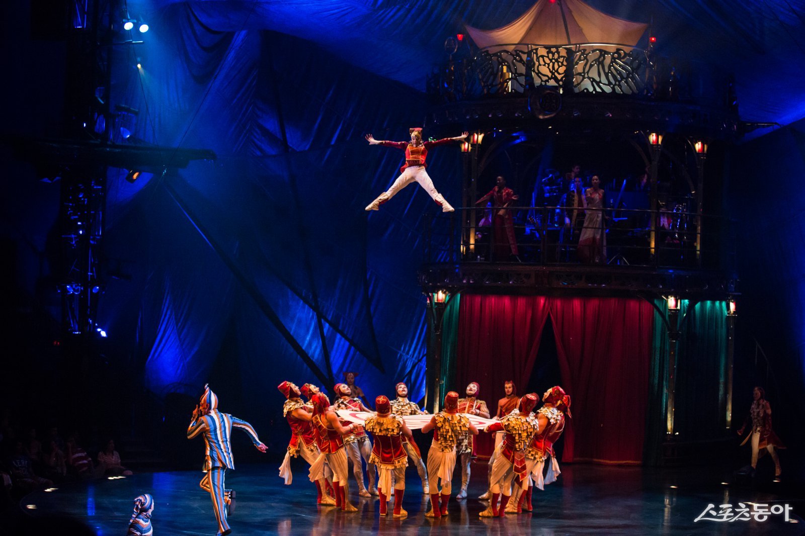 지난 20일 오후 해운대구 센텀시티 내 빅탑 태양의서커스 공연장에서 쿠자 ‘샤리바리’ 공연이 진행되고 있다. ‘쿠자’는 곡예와 광대술을 결합한 정통 서커스 작픔으로 2007년 첫선을 보인 이후 전 세계 23개국 70개 도시 이상에서 5000회가 넘는 공연을 이어 왔으며 누적 관객 수가 800만명에 달한다.