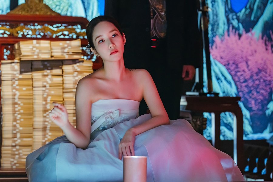 먼저 한복과 쪽머리로 단아한 패션을 선사한 윤이랑은 카리스마 있는 눈빛으로 리더의 포스를 뽐내다가도, 팀원들과의 뒤풀이 현장에서는 샤랄라한 드레스에 언밸런스한 머니건으로 장난기를 드러내 발랄함을 내비친다.
