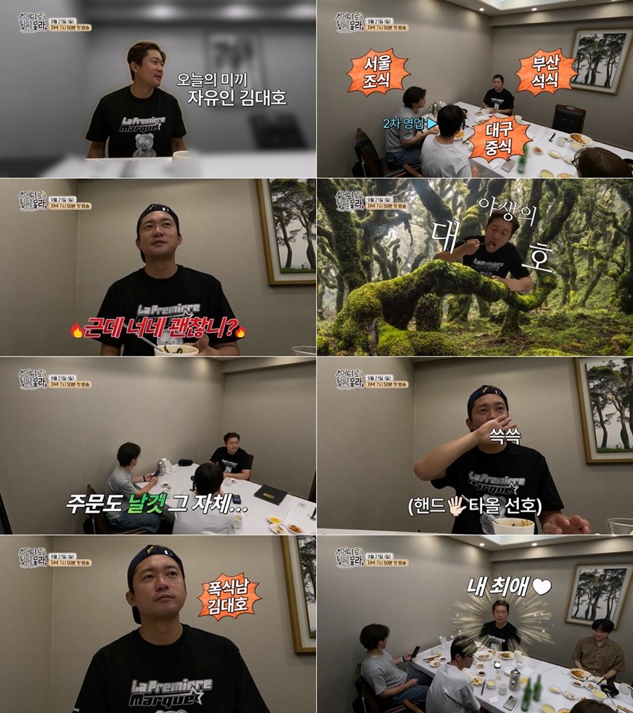 특히 그의 자유분방한 먹방 본능은 티저에서 확실히 드러났다. 잡채밥과 해물 짬뽕밥을 동시에 주문한 뒤 두 메뉴를 합쳐 새로운 ‘짬채밥’을 만들어 폭풍 먹방을 선보이는 모습이 포착된 것. 맨손으로 입을 닦으며 거침없이 식사를 이어가는 ‘야생 대호’의 모습에 제작진은 “이래서 김대호가 원픽”이라며 웃음을 감추지 못했다.